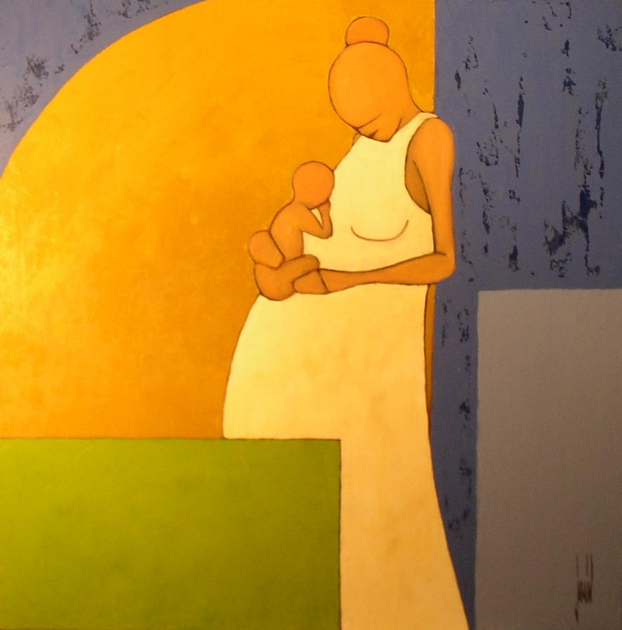 Quelques années auparavant, c’est une autre “Maternité” qui entrait au coeur du hall de la Clinique Jules Verne à Nantes (44) suite à son acquisition par l’Etablissement lui-même, à son ouverture. Cette huile sur toile de 80x80cm, peinte en 2003, accueille désormais les futurs parents, les jeunes mamans et leurs familles qui vivent ce moment inoubliable qu’est la naissance d’un enfant.
