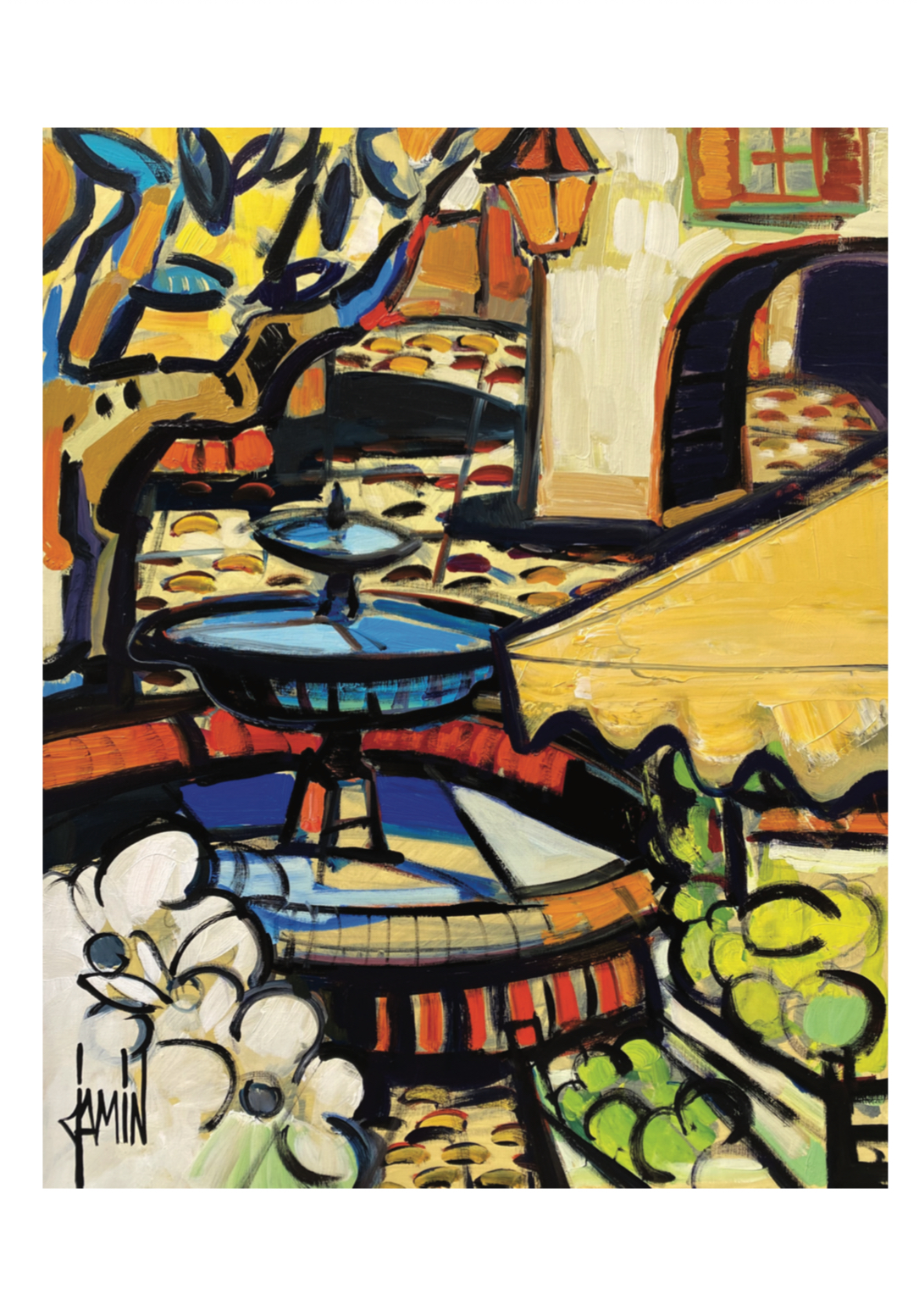 Reproduction de l’oeuvre « Uzès – la fontaine place aux herbes » éditée lors de la parution du nouvel ouvrage en novembre 2025 en 500 exemplaires